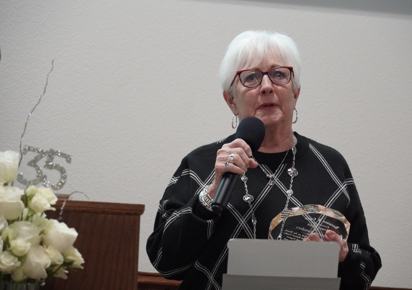 Curt Edwards accepts the Legacy Award for his mom, Merry Kaye Edwards